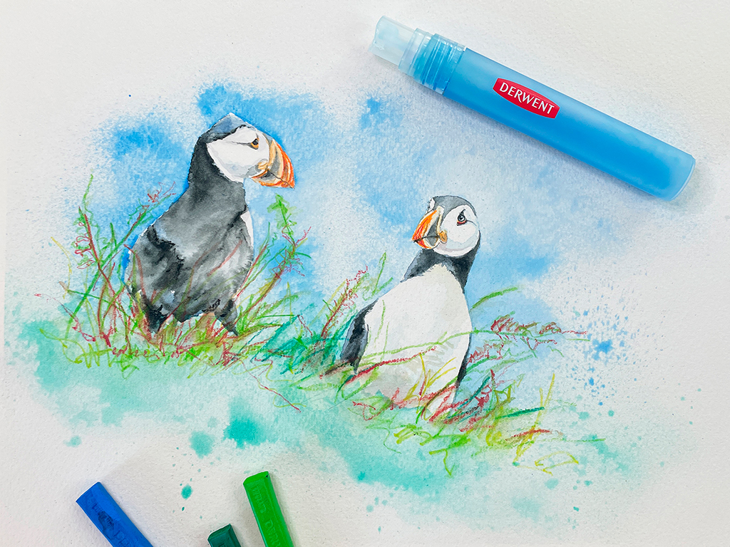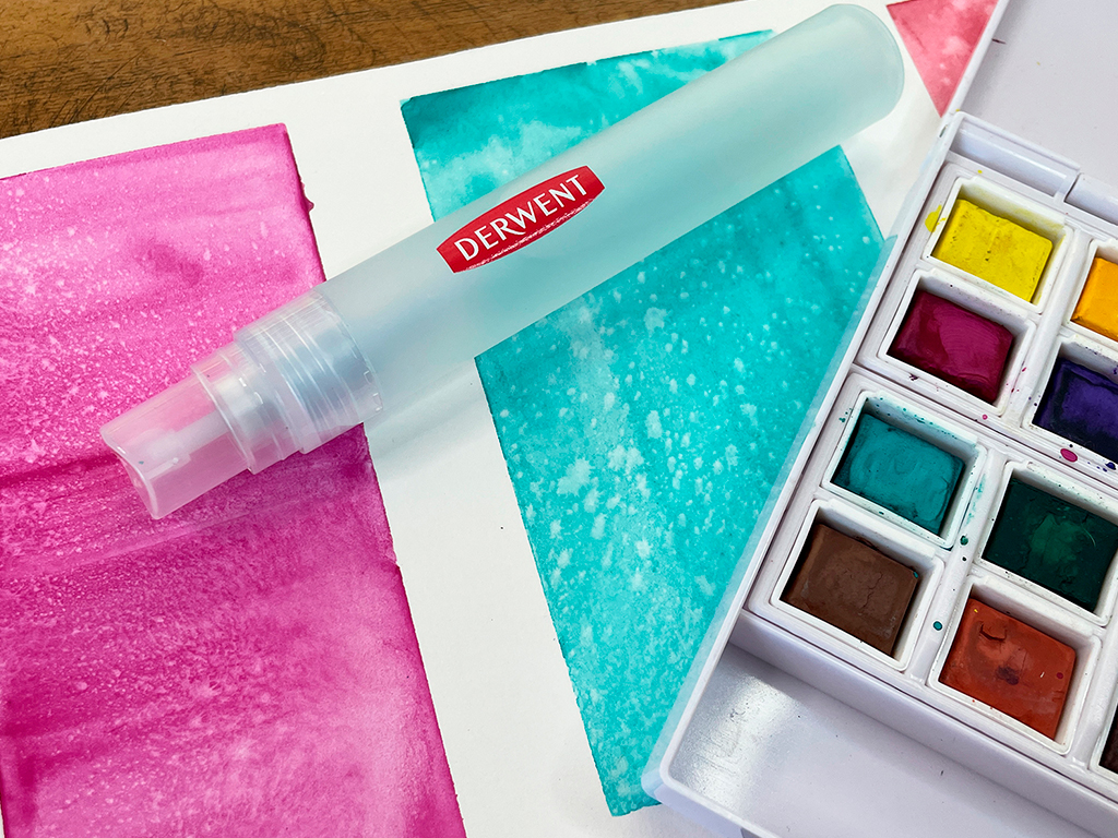 The spritzer adds a new creative dimension to your water based work. Spray water directly over water-soluble drawings to create interesting textures, colour runs and dribble effects. You can also dissolve colour pigment in the Grate ‘n’ Shake (Inktense or Watercolour for example) fill the spritzer and spray colour straight onto your image. Many artists will also spray water lightly over paintings to maintain a wet workable area.