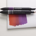Unlike water-based markers, Promarkers use alcohol-based ink. This means the colour dries quickly, doesn’t leave streaks on the paper, and allows the creation of translucent layers and smooth colour gradients. The alcohol ink also enables colours to blend seamlessly into one another, resulting in an airy, soft finish that’s difficult to achieve with other types of markers.