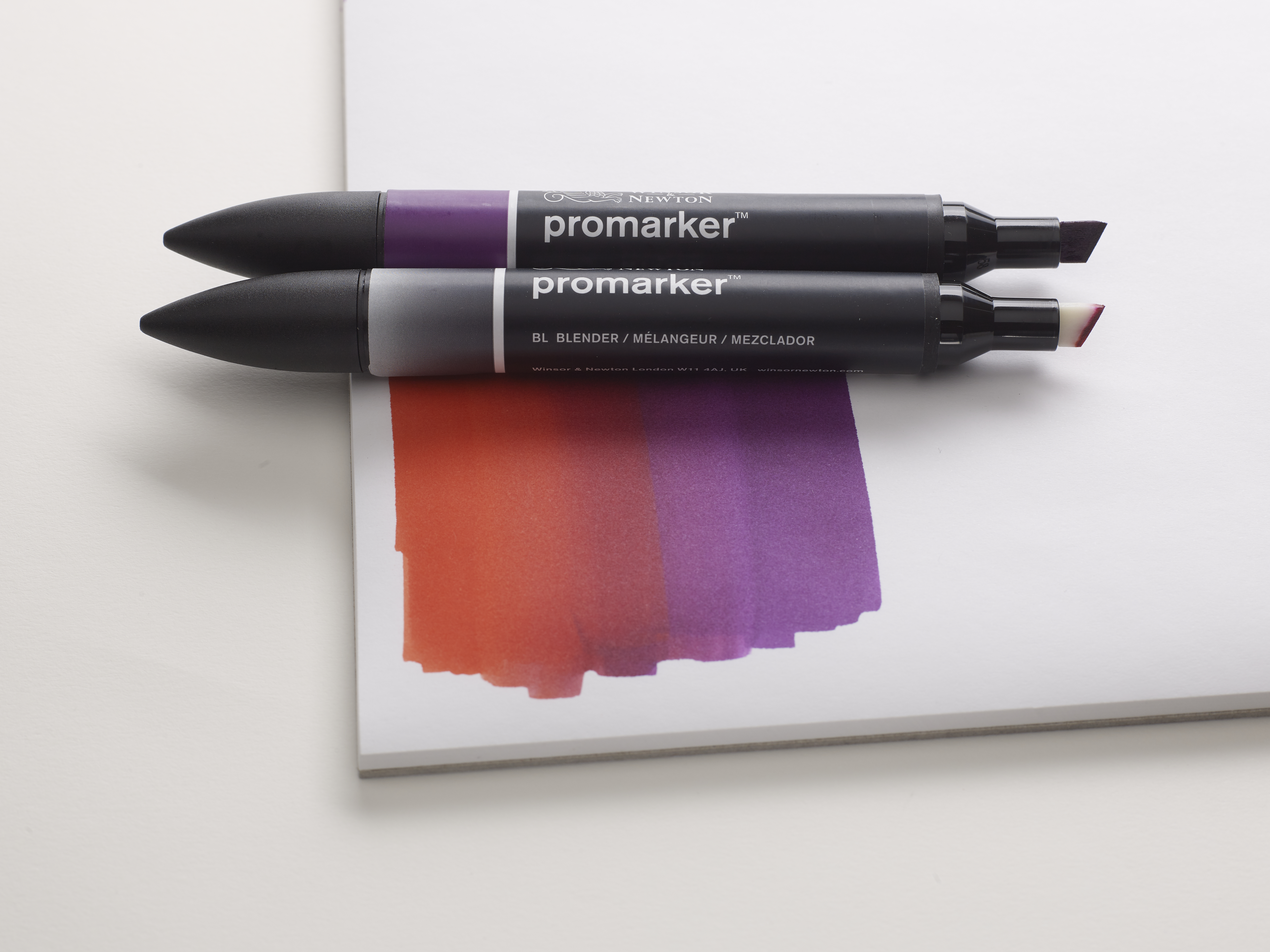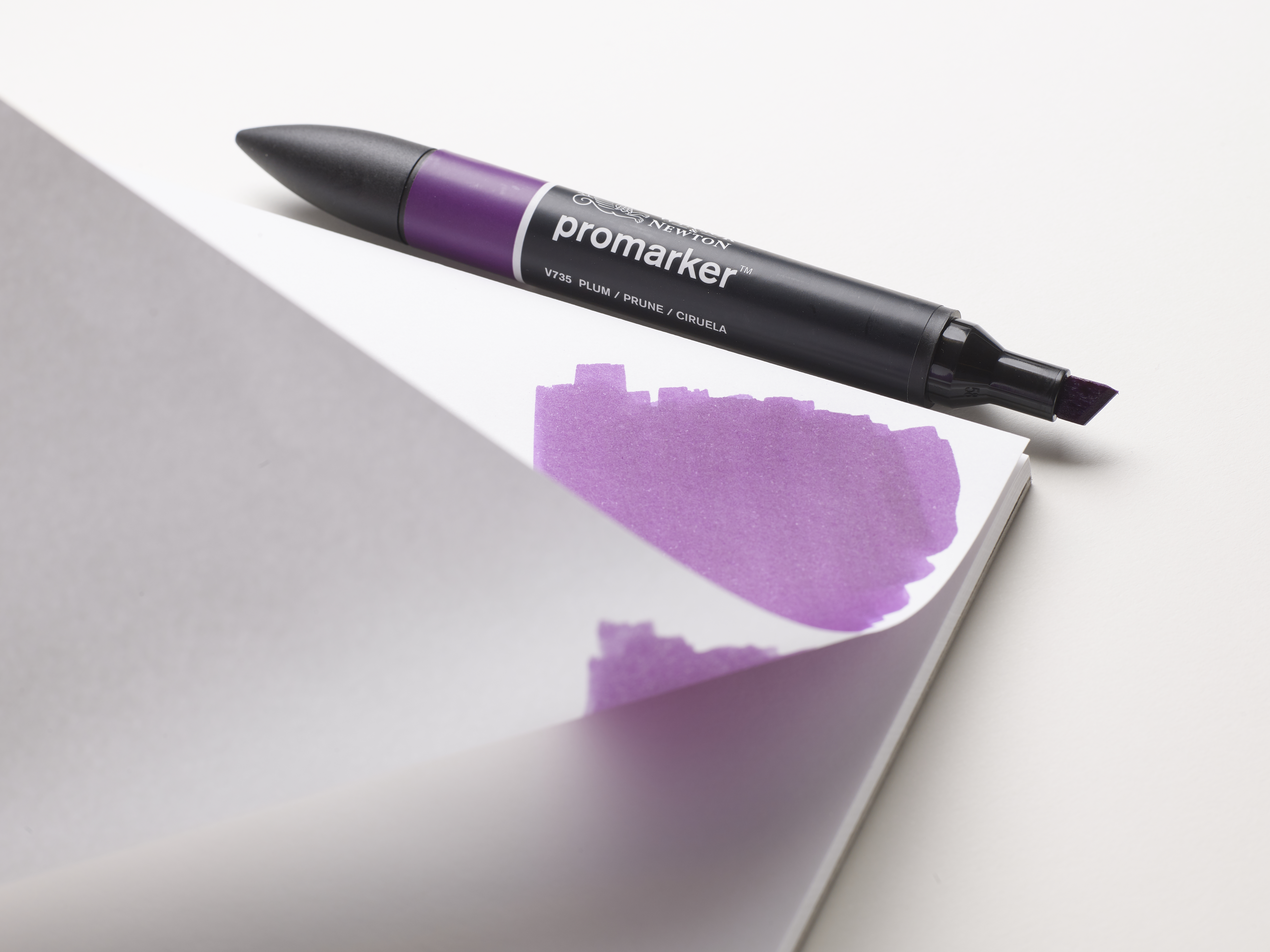Unlike water-based markers, Promarkers use alcohol-based ink. This means the colour dries quickly, doesn’t leave streaks on the paper, and allows the creation of translucent layers and smooth colour gradients. The alcohol ink also enables colours to blend seamlessly into one another, resulting in an airy, soft finish that’s difficult to achieve with other types of markers.
