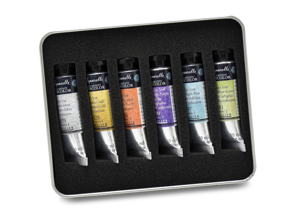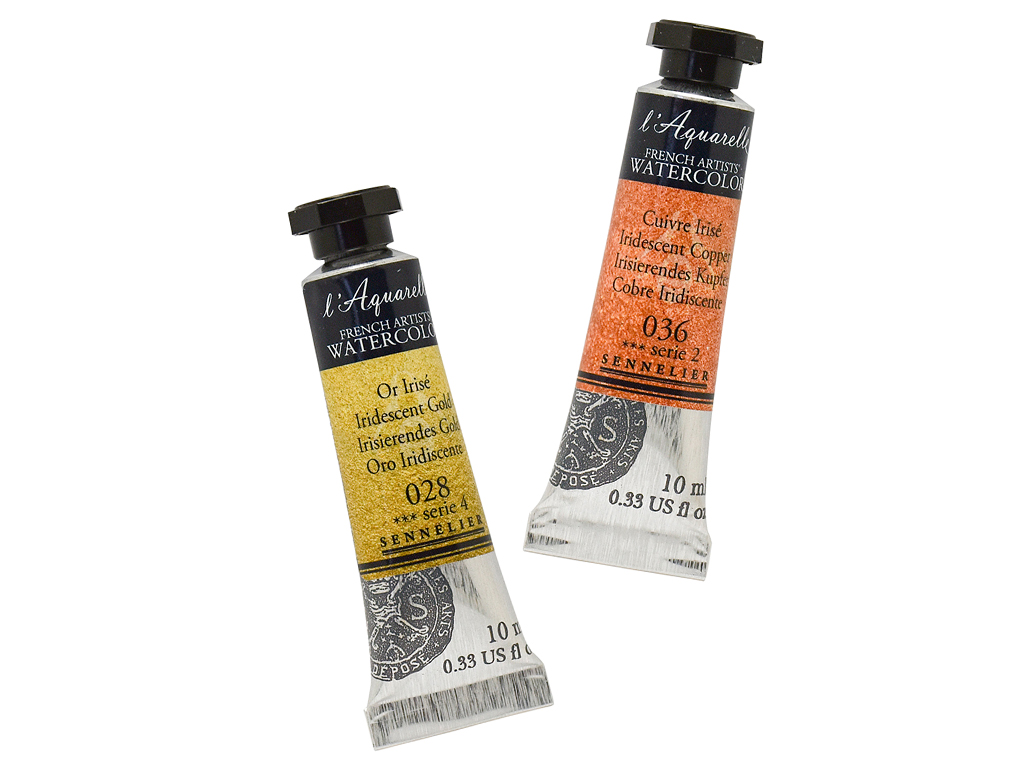 Vaivorykštės metalo spalvos akvareliniai dažai „Sennelier“ sukuria stulbinančius metalo efektus, puikiai išsiskiriančius tiek ant šviesių, tiek ir ant tamsių paviršių. Puikiai tinka jūsų meno kūriniams suteikti gylio ir dimensijos!