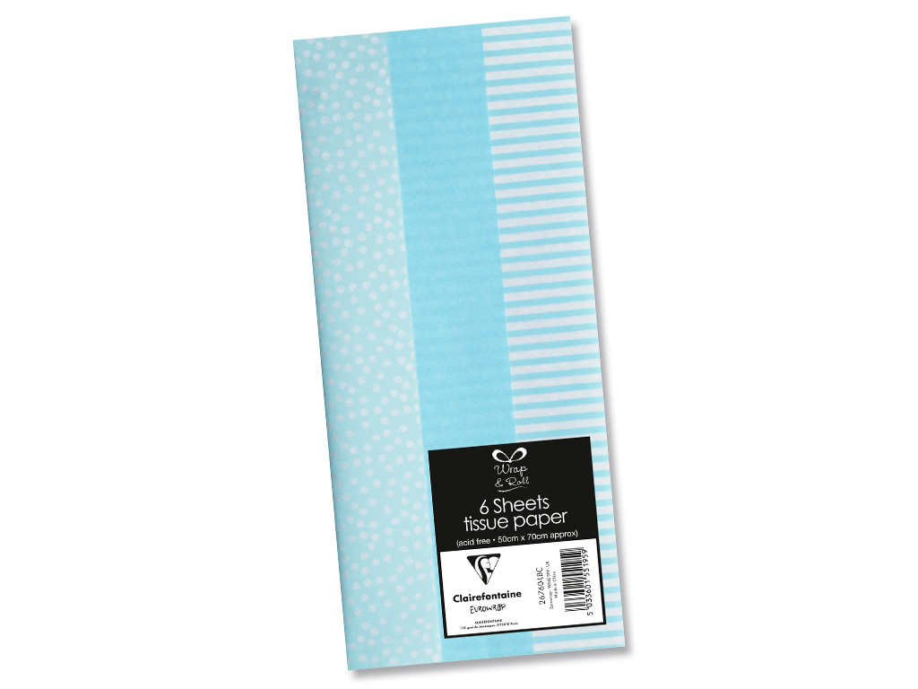 Šilkinis popierius Clairefontaine 50x70cm 6 lapų sulankstytas baby blue