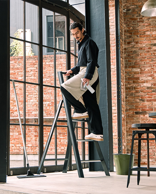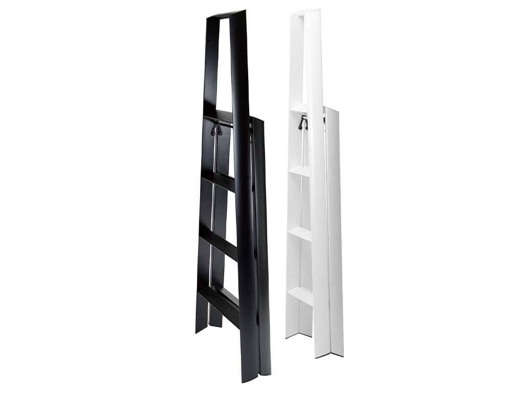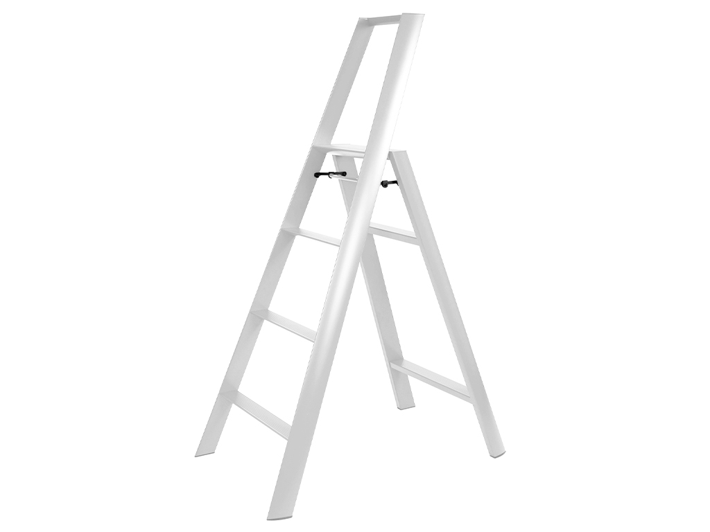 Vieglas, stabilas un izturīgas alumīnija trepes ar 4 pakāpienu. Pateicoties veiksmīgajam dizainam, šis vienkāršais mājsaimniecības piederums ir kļuvis par modernu telpas dizaina elementu. Kāju un pakāpienu trīsstūra griezums piešķir kājām modernu gaumīgumu un nodrošina šaurāku konstrukciju. Tādēļ trepes ir vienkāršāk novietot uzglabāšanai. Noapaļota un gluda forma, virsma un stūri, kā arī slēpti stiprinājuma elementi. “Best of the Best” Red Dot Award balvas laureāts.