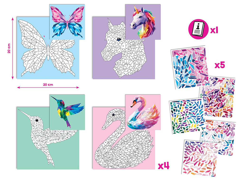 Numbrite järgi kleebitav pusle toob esile kaunid origami stiilis loomaportreed! Trendikad, loomadest inspireeritud pildid sobivad suurepäraselt nii kaunistusteks koju kui ka originaalseteks õnnitluskaartideks sõpradele. Lõbus ja kaasahaarav viis treenida tähelepanu ja nautida loomingut.