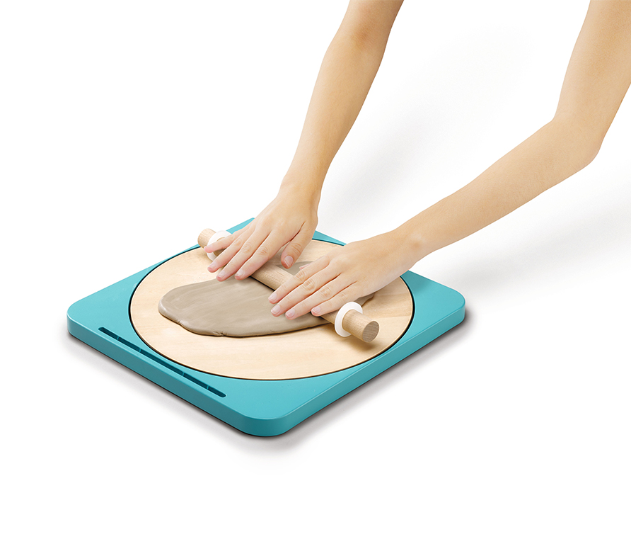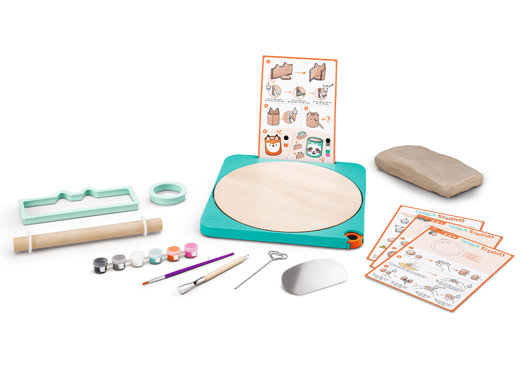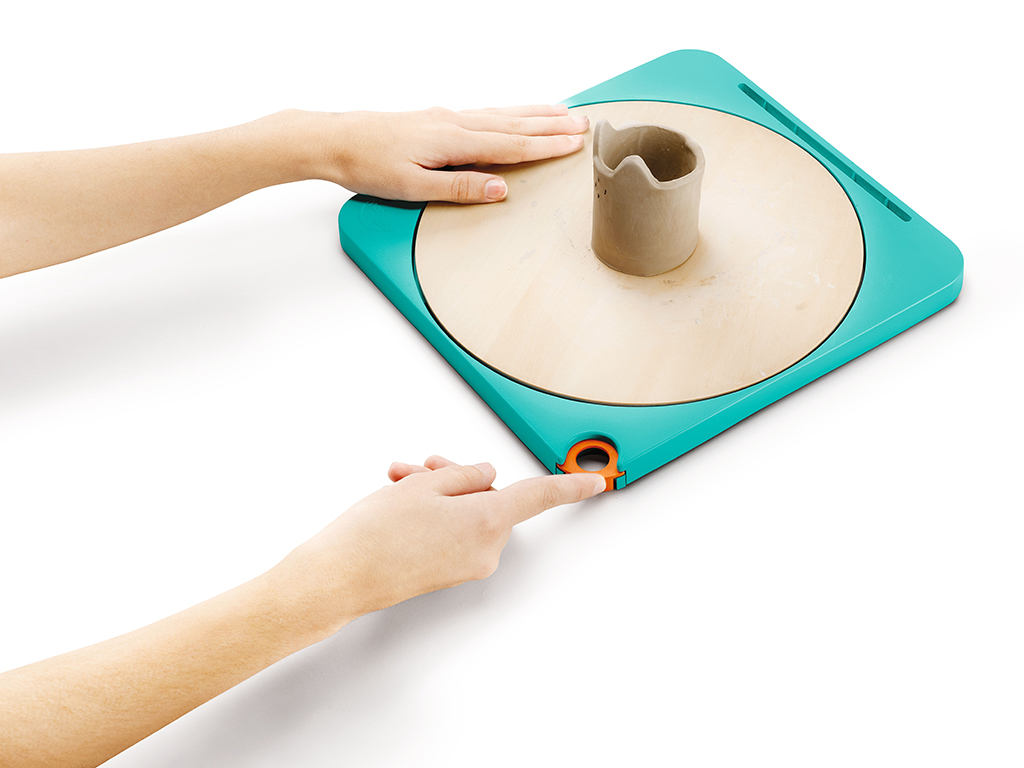 Manuaalselt pöörlevat tööpinda saab ühe nupu vajutusega lukustada või avada. Voolitava teose pööramine annab parema 3D-ülevaate oma meisterdusest. Puidust materjalid ja vaikne seadistus pakuvad rahustavat ja kaasahaaravat kunstielamust, muutes selle komplekti ideaalseks savi voolimise sissejuhatuseks väikestele lastele.